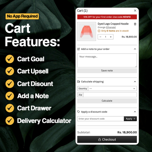 Cart drawer with free shipping goal | $200 | 0.40% | FREE |